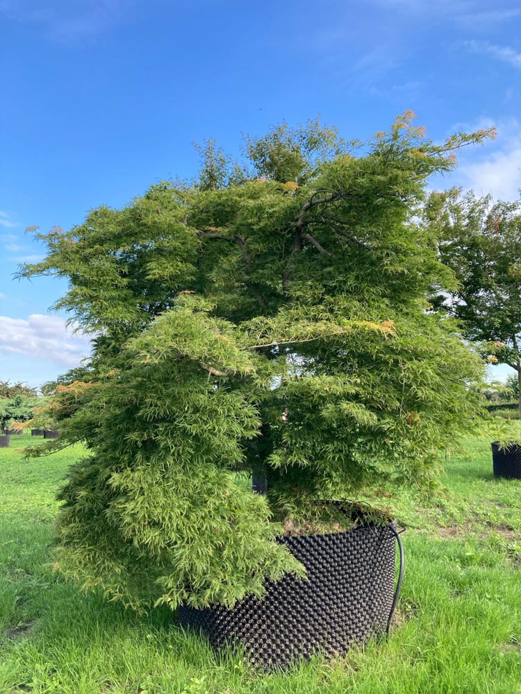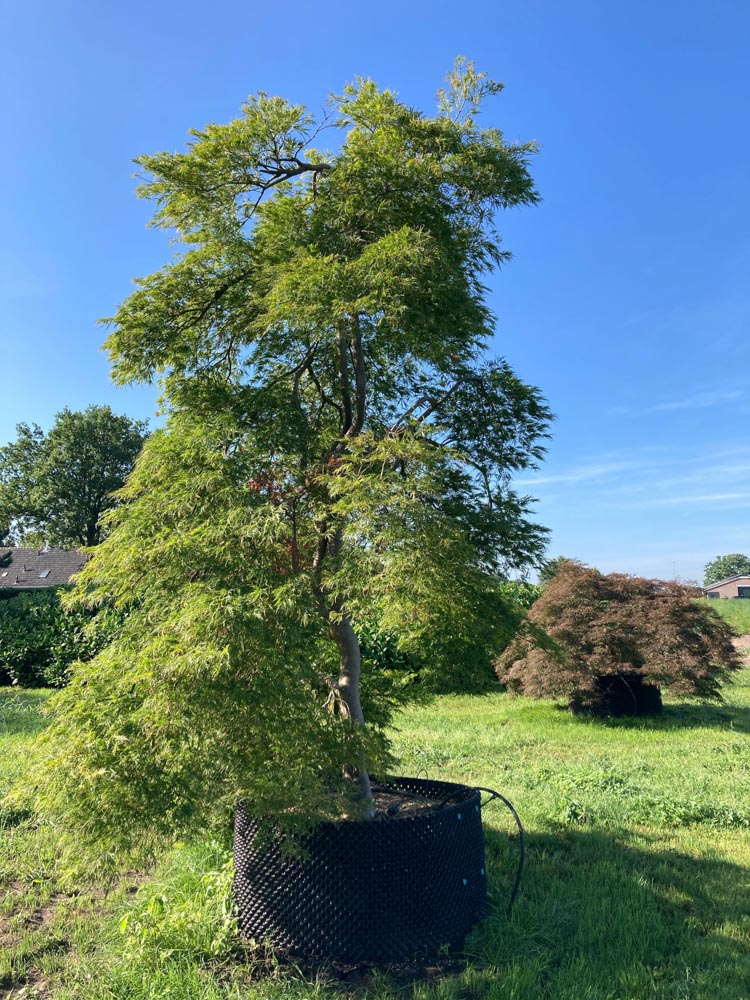 De ‘Dissectum’ is een klassieke keuze voor vrijwel elk tuinontwerp: van Japanse tuin tot formele Engelse tuin, van binnenplaats tot parklandschap. Als solitaire sierobject met zijn koepelvormige, overhangende habitus heeft hij een onmiskenbare aanwezigheid. Halfschaduw met beschutting tegen uitdrogende wind is ideaal; felle middagzon kan de fijne bladeren verschroeien. Vochtige, humusrijke, licht zure tot neutrale bodem; leem, veen, klei of zand zijn goed. Kalk is minder geschikt. Uitstekend winterhard. Geschikt voor tuin, park, binnenplaats en dakterras.