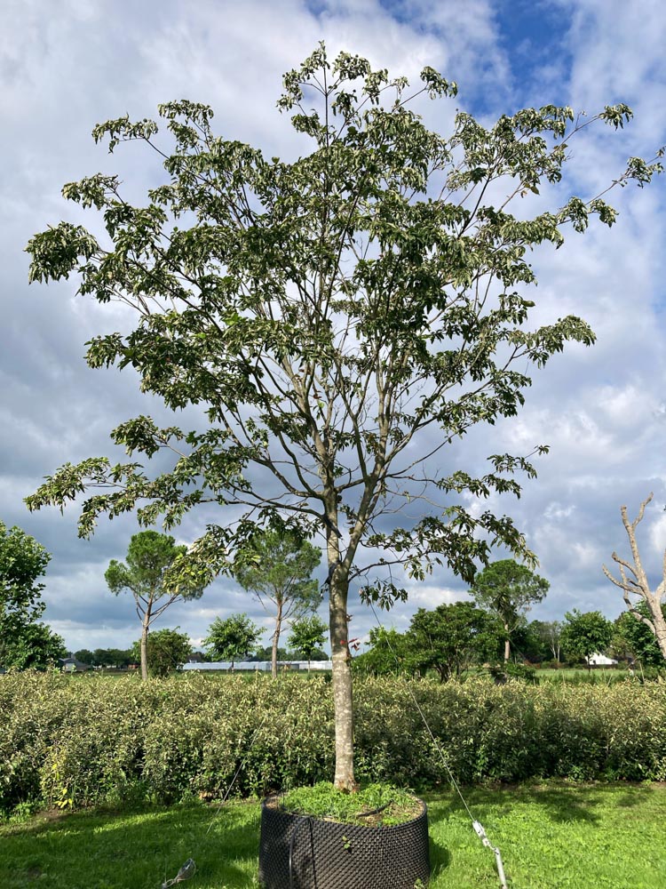 De boom kan 10 tot 20 meter hoog worden met een brede, open kroon. Bij Smits beschikbaar op 500/600 cm hoogte – een indrukwekkend formaat voor directe visuele impact. De groeisnelheid is matig.