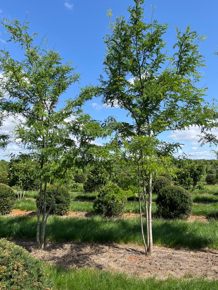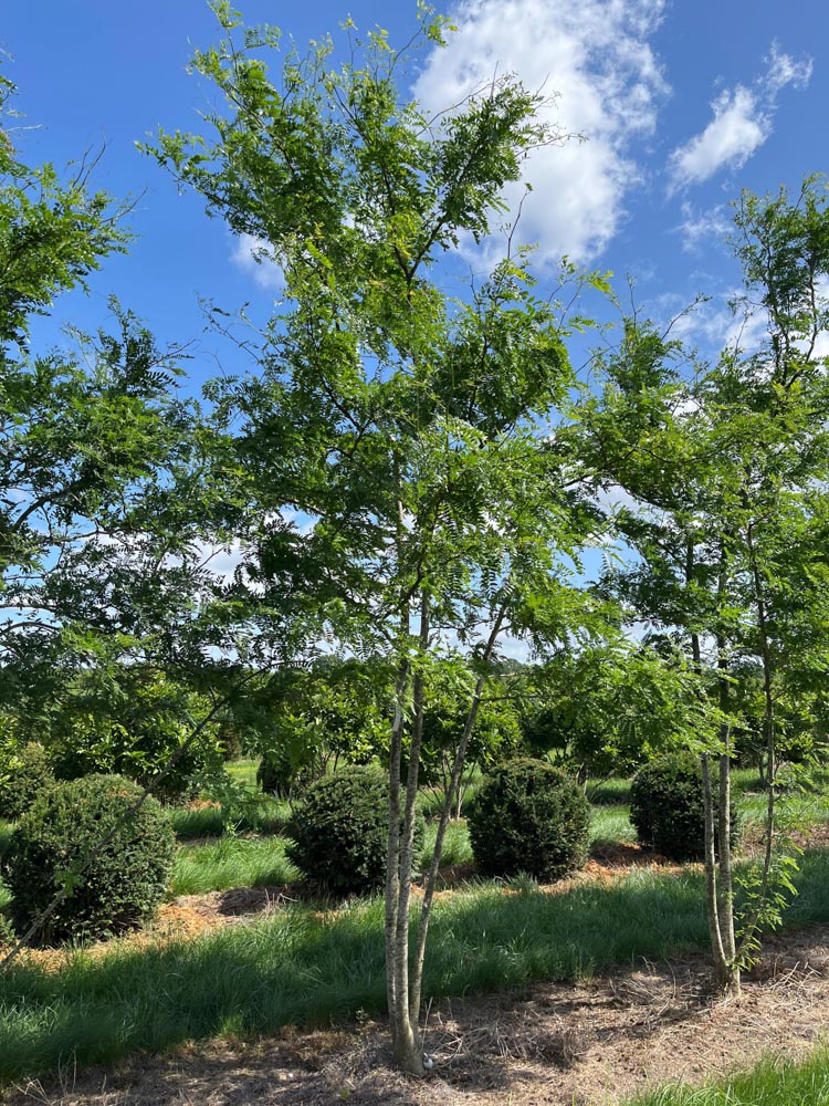 Gleditsia triacanthos Inermis wordt een grote boom van 15 tot 20 meter hoog, met een brede, open kroon. Bij Smits is hij als meerstammige boom leverbaar in hoogtematen van 350/400, 400/450 en 500/600 centimeter.