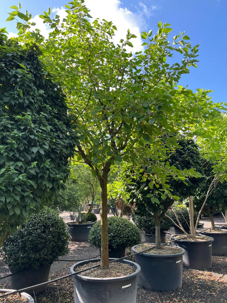 Snoeien is mogelijk maar niet per se nodig. De boom ontwikkelt van nature een brede, open kroon. Je kunt de boom wel snoeien om hem kleiner of compacter te houden. Snoeien doe je in de winter tijdens de rustperiode. Let wel: de boom bloedt sterk wanneer gesnoeid in het voorjaar, dus vermijd snoeien vlak voor en tijdens het uitlopen. Wintersnoeien geeft geen bloedingsproblemen. Je kunt ook de kroonvorm sturen door selectief snoeien. De boom verdraagt snoeien goed en loopt krachtig weer uit.