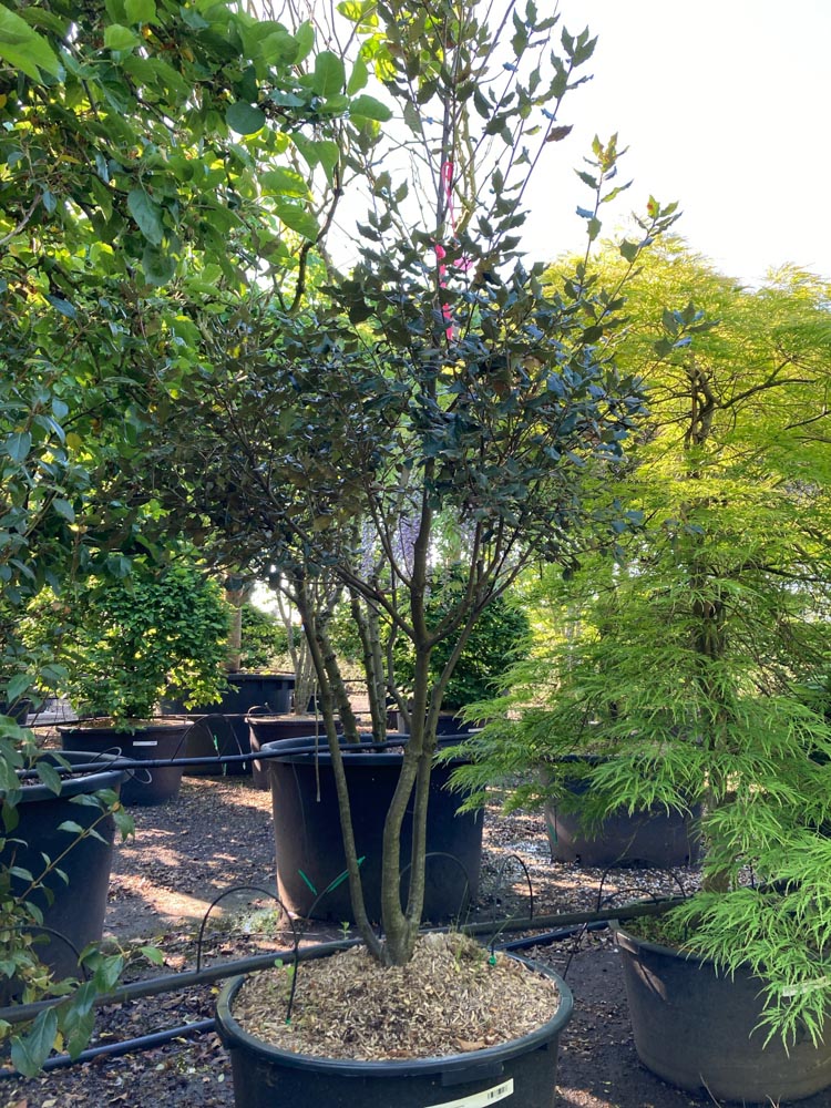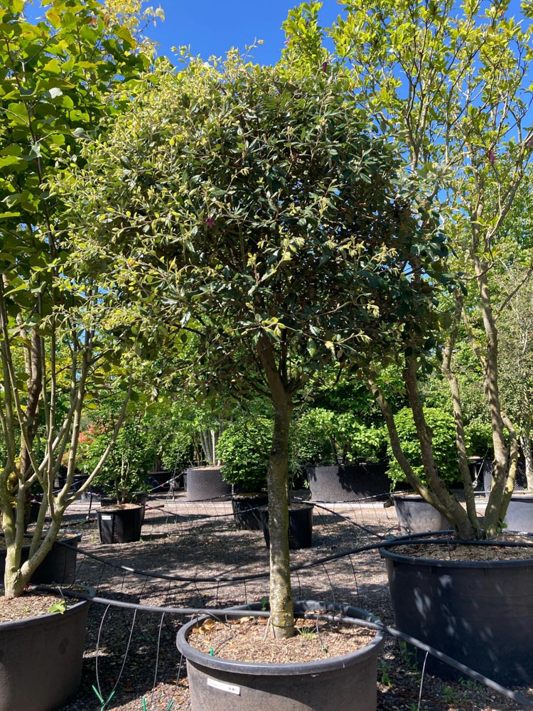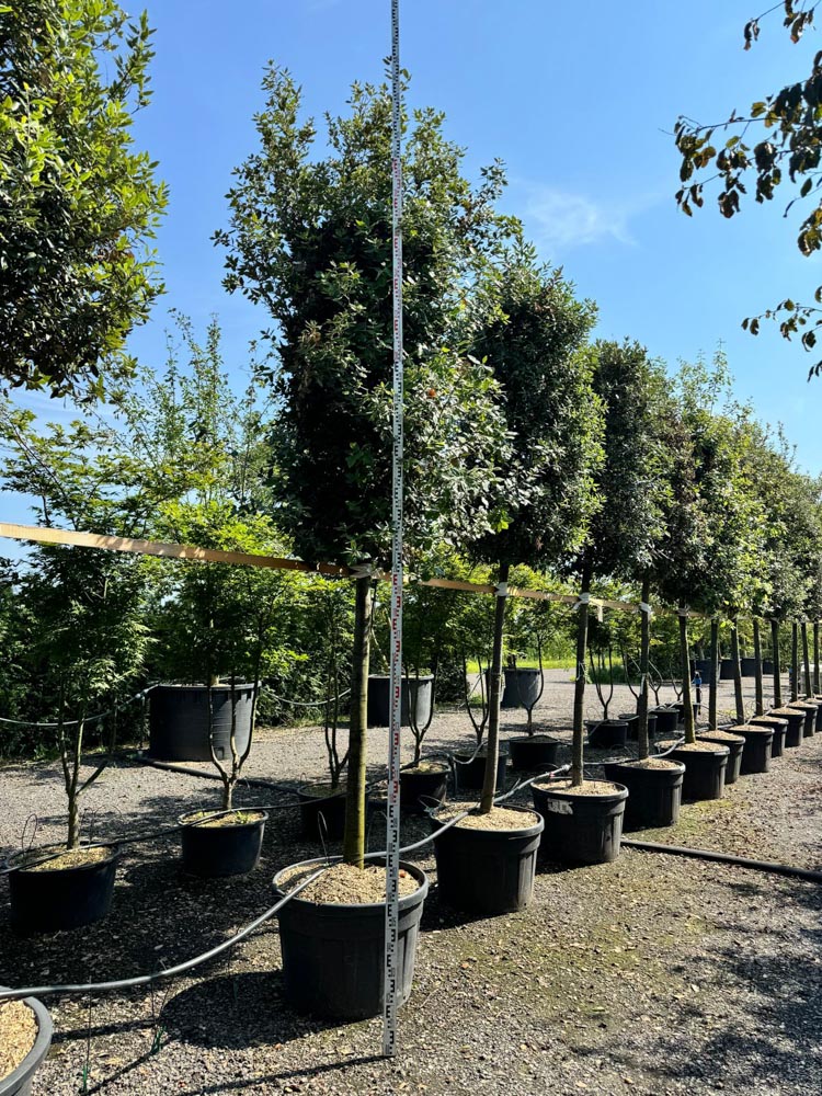 Geef de boom 10-12 meter ruimte. Snoeien is mogelijk en de boom verdraagt dit goed. In zeer koude winters kan bladschade optreden maar de boom herstelt zich meestal. Voor mediterrane sfeer, wintergroen en beschutte tuinen is dit een karaktervolle keuze. Let op de winterhardheid in koudere regios.