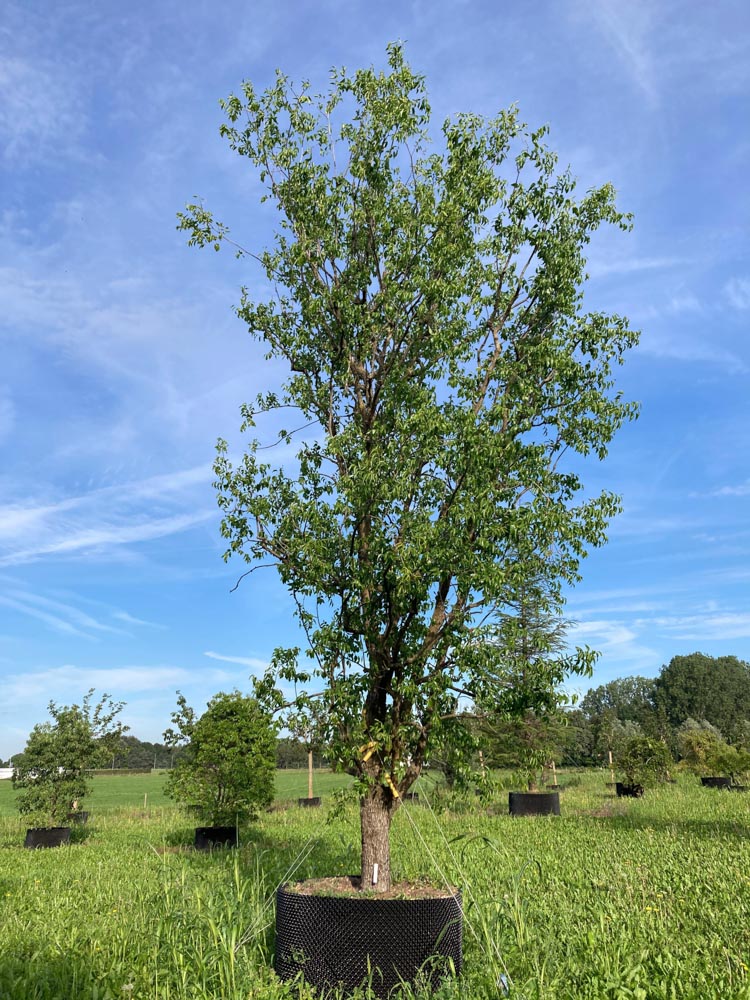 De groeivorm is breed en open, sierlijk met licht zigzagachtige takken en kleine, scherpe doorntjes bij de bladaanzetten. Bij Smits leverbaar als vrije boom van 500/600 centimeter hoogte — een indrukwekkend, volwassen formaat. Op volwassen leeftijd bereikt de boom 5 tot 10 meter hoogte. De stam heeft een grijsbruine, gegroefd-vezelige bast.